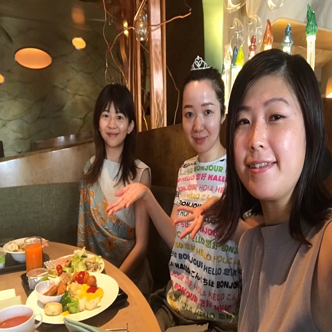 今ドキの若い子はワントーンでまとめたりおそろにするらしいけど、ワシらは流行に鈍感な30代なので服のテイストもカチューシャも見事にバラバラ。